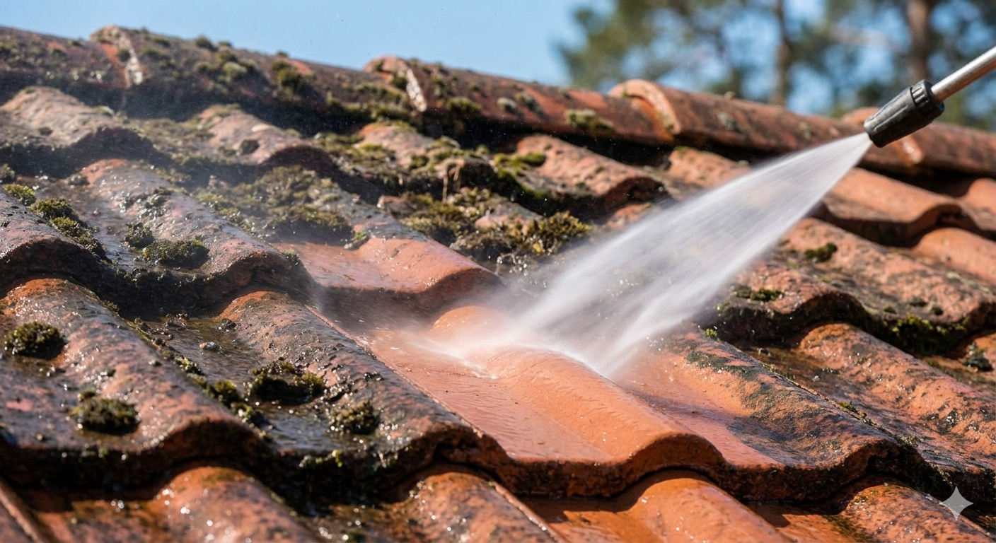 Skånsom og effektiv fjerning av smuss og alger som får taket til å se nytt ut uten å skade takstein.